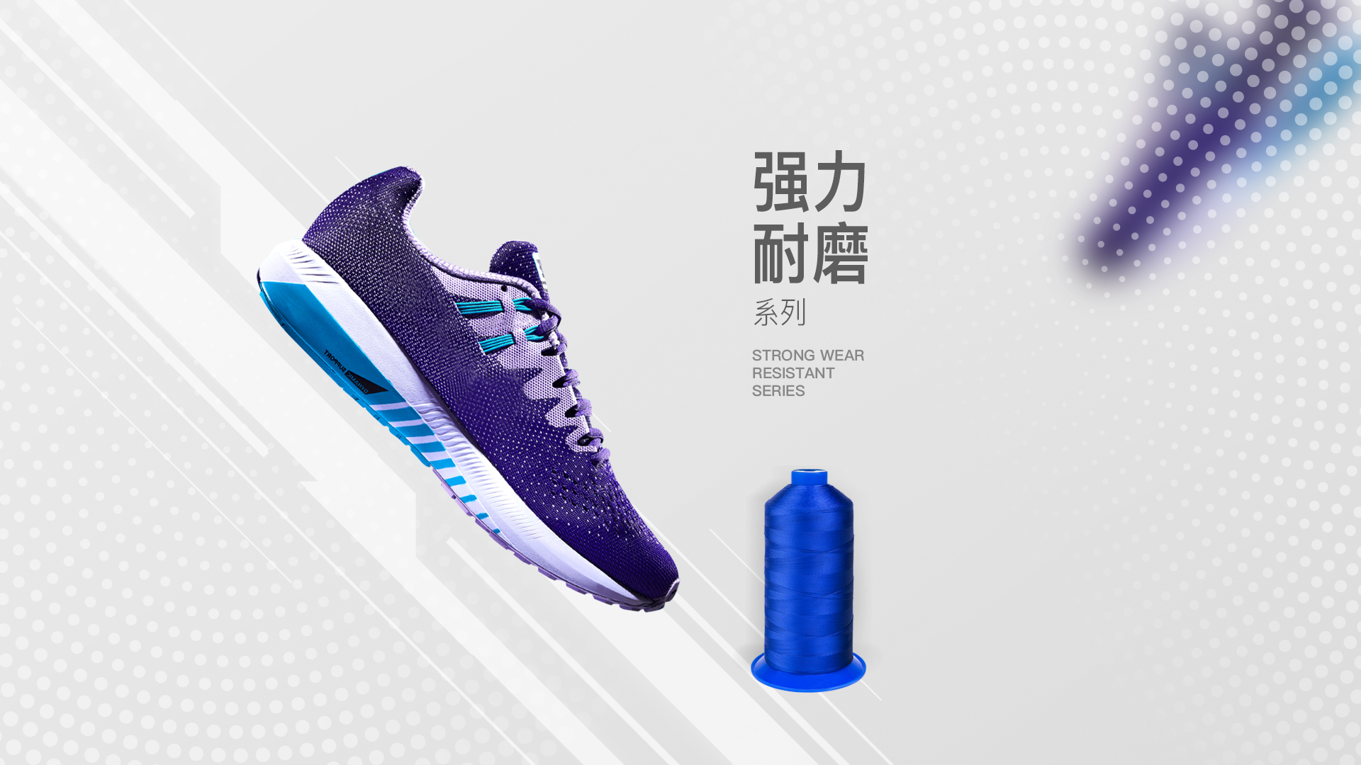 本產品選用高韌度滌綸長絲做原料,配合獨特的潤滑加工而成。最佳的車縫性能體現完美的線跡,是高檔鞋服的首選產品。